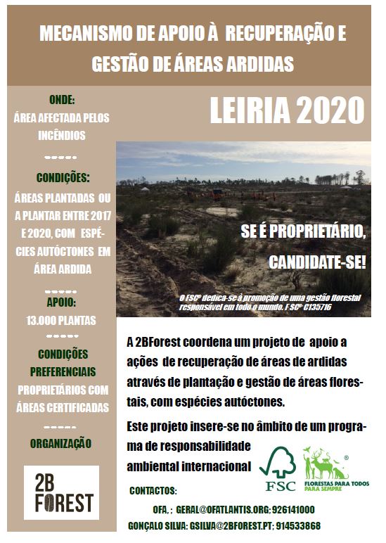 A 2BForest coordena um projeto de apoio a ações de recuperação de áreas de ardidas através de plantação e gestão de áreas florestais, com espécies autóctones.