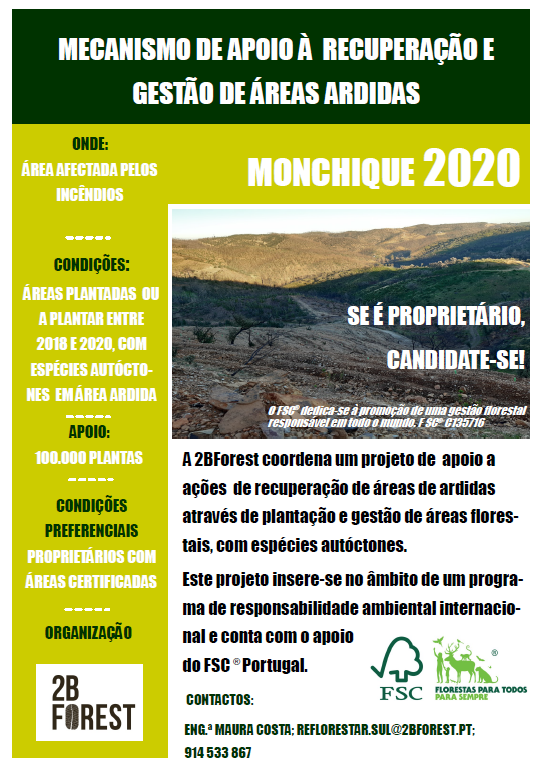 Porque acreditamos que "Juntos fazemos Mais e Melhor Floresta" e no "Princípio da Melhoria Contínua" associado à certificação florestal, a 2BForest associa-se com uma entidade internacional para apoiar proprietários que pretendem recuperar áreas ardidas no Concelho de Monchique, com uma atenção especial à floresta autóctone!